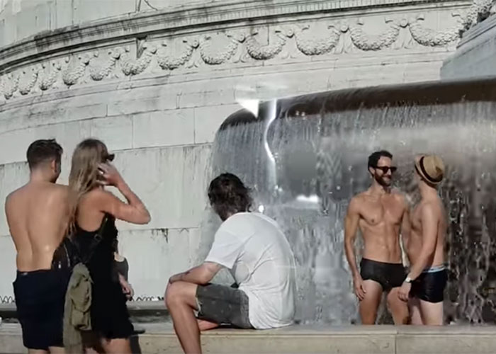 Mientras el sol de verano se derrama sobre el monumento de Roma, se puede ver a varios sumergiendo sus pies en el agua y tomando fotos de sus amigos semidesnudos.