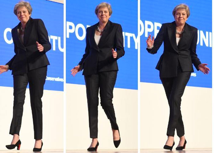 Theresa May, bailando a ritmo de Abba en el escenario antes de su discurso en el congreso anual de su partido. pic.twitter.com/oAxkZcdqJv