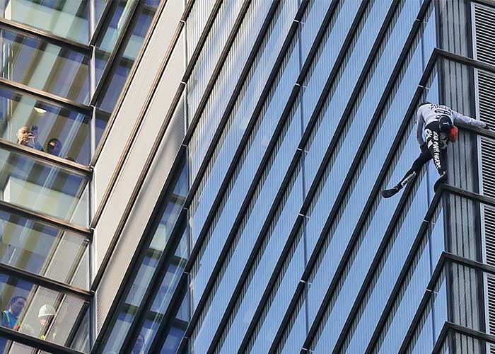 El hombre araña francés escala los 230 metros de la torre Heron en #Londres, sin cuerdas #spiderman pic.twitter.com/cii7PQxGI3
