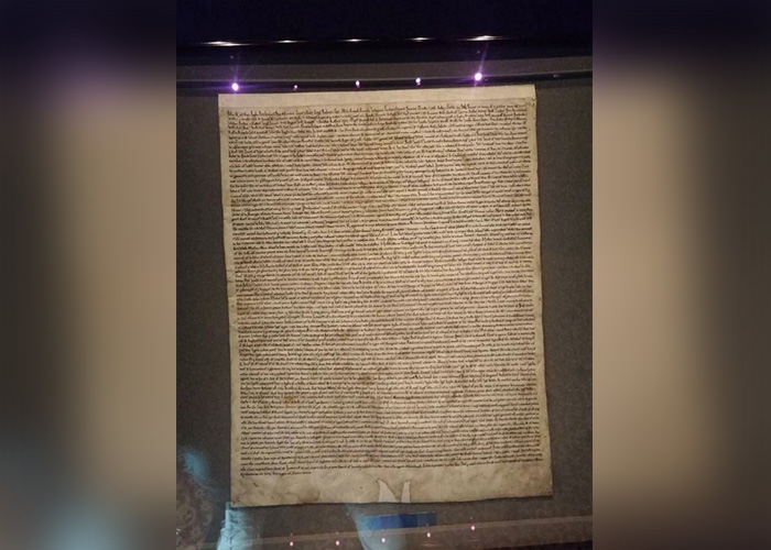La Carta Magna otorgada por el rey Juan en 1215 se ha convertido en un símbolo permanente del estado de derecho. El documento en exhibición en la catedral es uno de cuatro originales que sobrevivieron.