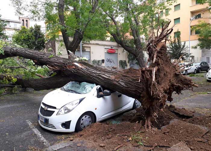 En la capital italiana el viento derribó numerosos árboles que destrozaron varios coches y se procedió al cierre de atracciones turísticas como el Coliseo, los Foros o la colina del Palatino.