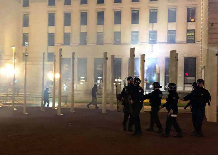 La policía disparó gases lacrimógenos a cientos de jóvenes que irrumpieron en el centro de la ciudad de Lyon, atacando a policías y transeúntes, destrozando vitrinas de tiendas e incendiando contenedores de basura.