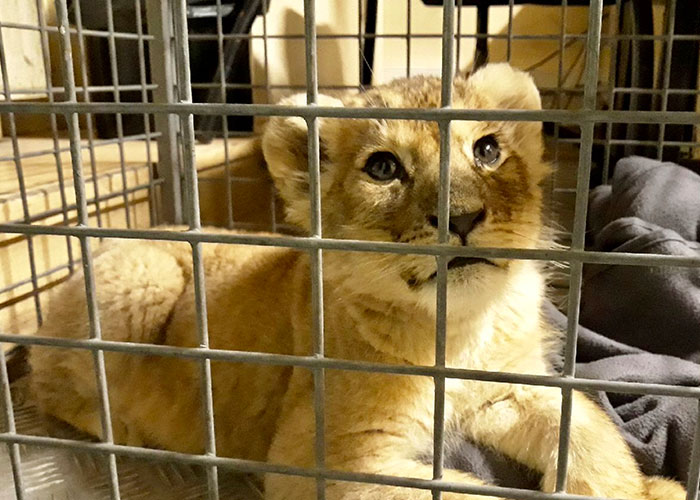 Y esto no solo está ocurriendo en Francia. Otro cachorro de león se está adaptando a su nueva casa, un centro holandés para felinos grandes, luego que un corredor lo encontrara el mes pasado dentro de una jaula, abandonado en el centro de Holanda.