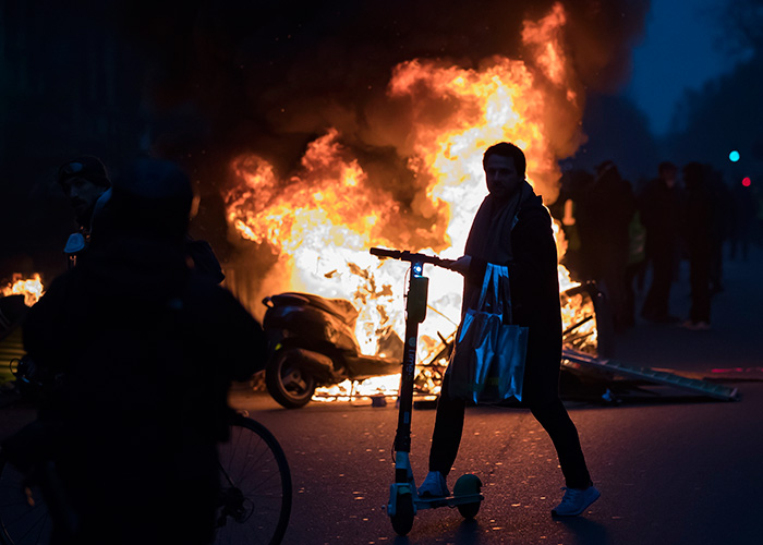 La jornada comenzó de forma pacífica en las calles de París. A medida que avanzaba la tarde volvió a haber enfrentamientos entre la policía y los manifestantes, quema de vehículos y algunos destrozos en las calles, pero lejos de las imágenes de gran violencia que se vivieron en la capital francesa el pasado 1 de diciembre, en el que los «chalecos amarillos» más radicales dañaron con grafitis el Arco de Triunfo, rompieron escaparates y destrozaron el mobiliario urbano. El saldo de detenidos al final del día ascendió a 103, 101 continúan bajo custodia.