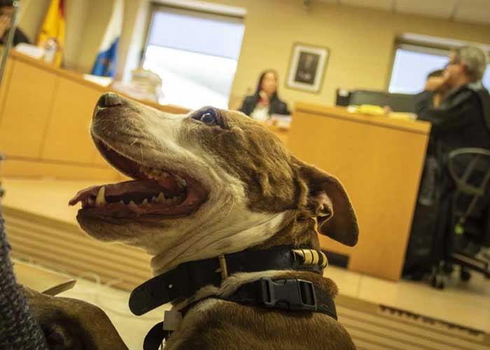 La magistrada Sandra Barrera sorprendió a los asistentes al pedir que pasara "la testigo perjudicada, la perra Milagros", de raza pitbull, durante la vista judicial, celebrada este martes en la ciudad de Santa Cruz de Tenerife, en las islas Canarias.