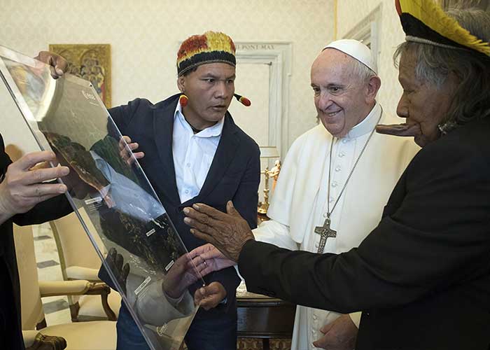“Los pueblos amazónicos nunca han estado tan amenazados en sus territorios como ahora, una tierra disputada desde varios frentes: el neo-extractivismo y la fuerte presión por grandes intereses económicos que dirigen su avidez sobre petróleo, gas, madera, oro, monocultivos agroindustriales”, alertó el papa Francisco durante su encuentro con el líder indíguena.