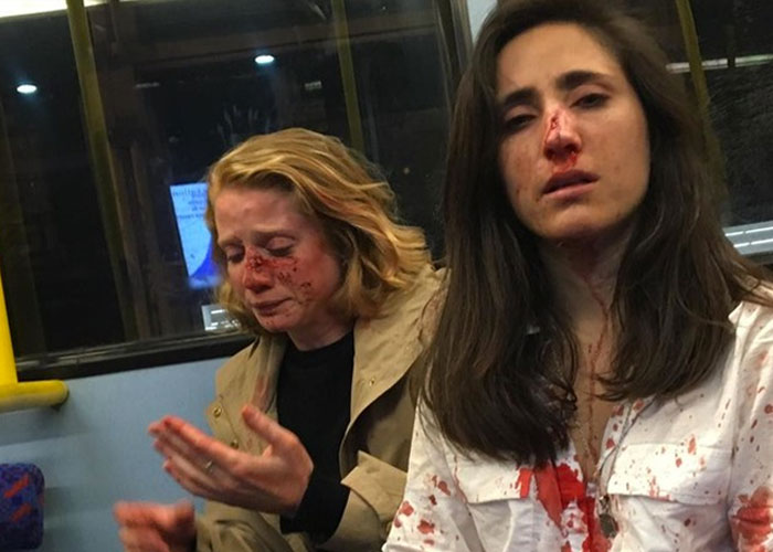 Melania Geymonat, una azafata de Ryanair de 28 años de origen uruguayo, publicó una fotografía en Facebook en la que ella y su novia Chris se ven con las caras ensangrentadas después de sufrir un ataque por parte de un grupo de desconocidos en un bus nocturno en Londres. La joven pareja volvía de una cita romántica la noche del 30 de mayo cuando ?uatro hombres se les acercaron y empezaron a insultarlas y acosarlas tras notar que eran lesbianas.