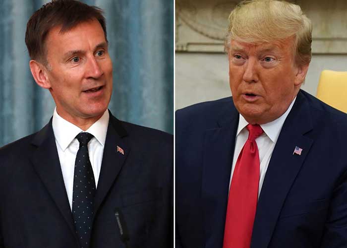 Hunt, quien batalla con el excanciller Boris Johnson por el puesto que dejará vacante May el 24 de julio próximo, le recordó al mandatario norteamericano que al igual que los diplomáticos estadounidenses dan sus opiniones personales al secretario de Estado Mike Pompeo, los británicos hacen lo mismo.