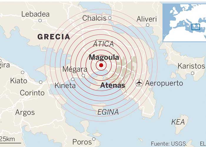 Según las primeras informaciones, el epicentro del temblor se ubicó 23 km al noroeste de Atenas, y fue sentido hasta en las islas del Peloponeso.