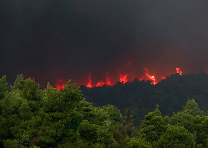 El fuego asola Grecia. Decenas de personas luchan sin descanso contra un gran incendio que arrasa con todo a su paso en la isla de Eubea.