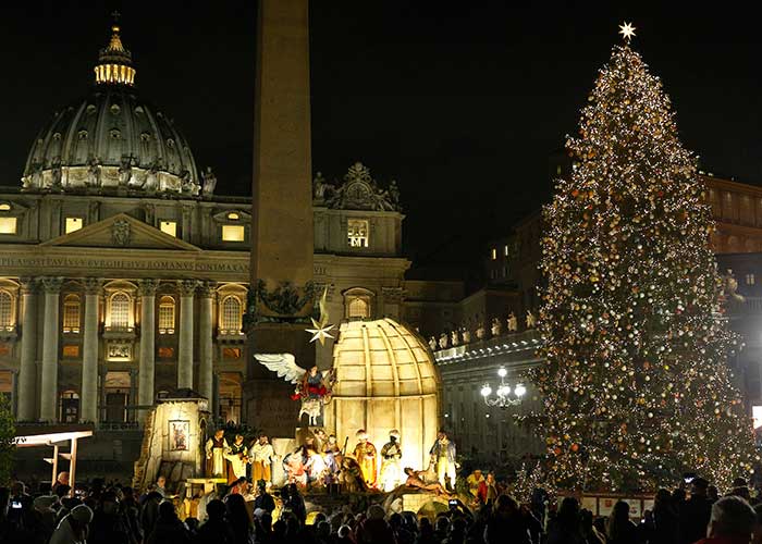 Los dos símbolos de la Navidad fueron iluminados ante miles de personas y turistas y permanecerán en la plaza de San Pedro hasta el 12 de enero.