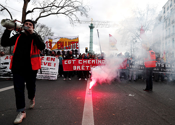 Al frente de la principal manifestación, que discurre en París a partir de las 13.30 locales (12.30 GMT) entre las plazas de la República y de la Nación, estarán los sindicatos que exigen la retirada total del proyecto, empezando por la Confederación General del Trabajo (CGT), que amenaza con prolongar la protesta estas Navidades.