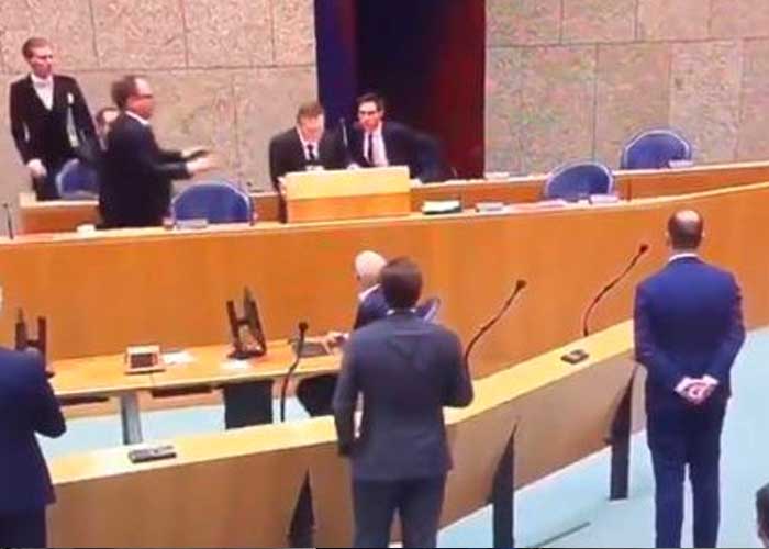 Este ministro estaba siendo cuestionado por el líder de la ultraderecha, Geert Wilders, sobre la crisis del coronavirus, cuando de repente empezó a encontrarse mal, se tambaleó en el estrado y cayó al suelo, hasta que el ministro de Asuntos Sociales y Trabajo, Wouter Koolmees, le ayudó a ponerse de pie de nuevo para tomar un trago de agua.
