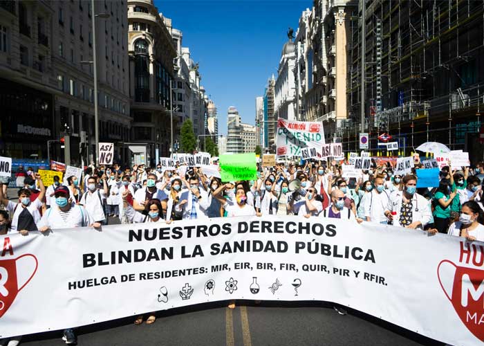 Los llamados MIR son estudiantes de medicina que están completando de manera práctica su formación en la especialidad que les corresponde, y están vinculados al sistema público de salud por un contrato que el comité de huelga considera precario, tanto por las condiciones laborales que incluye, como por la escasa retribución que ofrece.