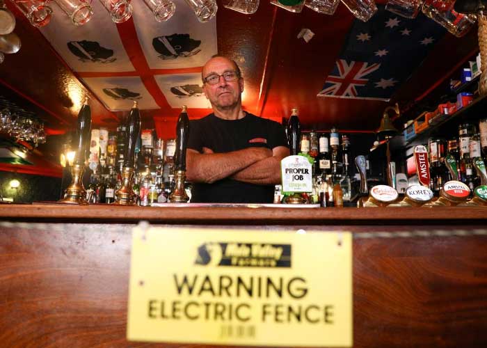 “Si hubiera puesto un poco de cuerda sin más, no creo que nadie hubiera prestado tanta atención como a una valla eléctrica”, dice el propietario del bar, Jonny McFadden.
