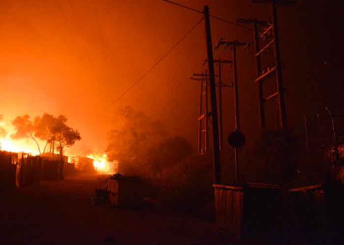 Un gran incendio arrasó con el campo de refugiados más grande de Grecia. Unas 13.000 perdieron sus viviendas y todas sus pertencencias. El gobierno ha declarado el estadio de emergencia en la isla de Lesbos. /ft pic.twitter.com/sMEAkTpmGU