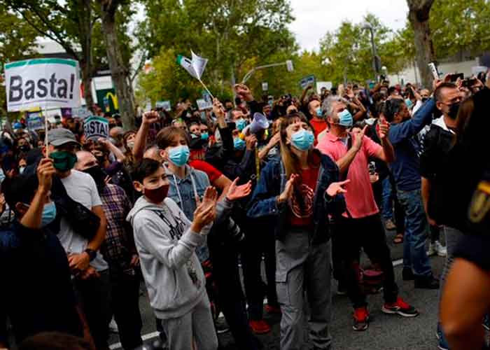 MADRID (AP) — Los españoles protestaron el domingo en Madrid por la forma como la presidenta regional está respondiendo a la crisis del coronavirus, luego de imponer nuevas restricciones en los vecindarios con las tasas de contagio más elevadas.