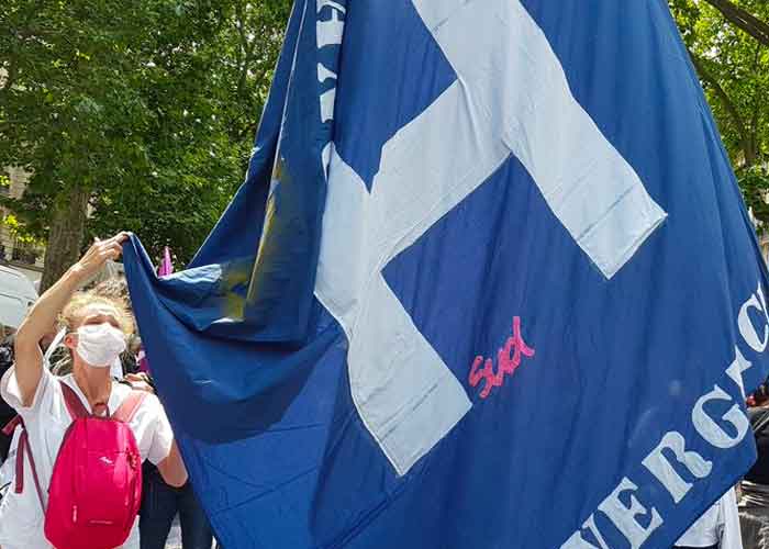Plusieurs centaines de personnes malgré les difficultés liées au Plan Blanc qui permet de réquisitionner les soignants sur leurs jours de repos. Le message est clair : les moyens ne sont pas à la hauteur & le #CouvreFeu est une réponse répressive qui ne résoudra pas la crise ! pic.twitter.com/FNLRqJo5Ty