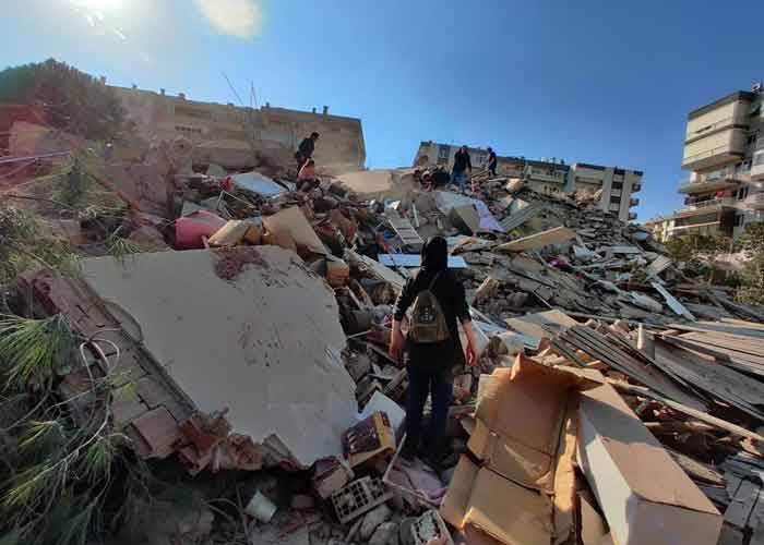 El temblor, de 6,8 grados de magnitud, con epicentro en el mar Egeo, se produjo a las 11:51 GMT e hizo derrumbarse al menos una decena de edificios en varios barrios de Esmirna, la tercera mayor ciudad de Turquía.
