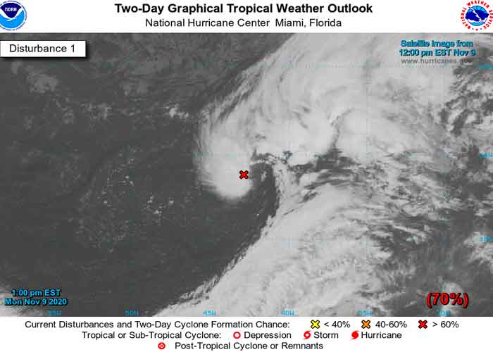 Según explica Francisco Martín, meteorólogo de Meteored, "el sistema comienza a mostrar más signos de organización y podría desarrollarse aún más en los próximos días, como tormenta tropical o subtropical al final de la semana, mientras el sistema se mueve hacia el este o este-noreste sobre el océano Atlántico".