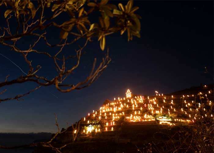 Cientos de figuras del pesebre iluminan las crestas rocosas de Manarola, un pintoresco pueblo de la costa italiana de #CinqueTerre, que este año rinde homenaje a los trabajadores de la salud por su lucha contra el covid-19 pic.twitter.com/S4USvbqhMT
