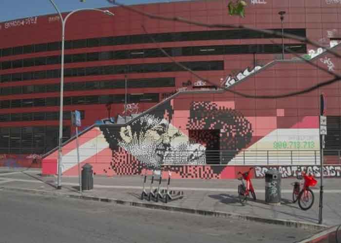 El mural, realizado en estilo pixel art, se encuentra en la estación de metro Jonio y ha contado con el apoyo de las autoridades del municipio romano.