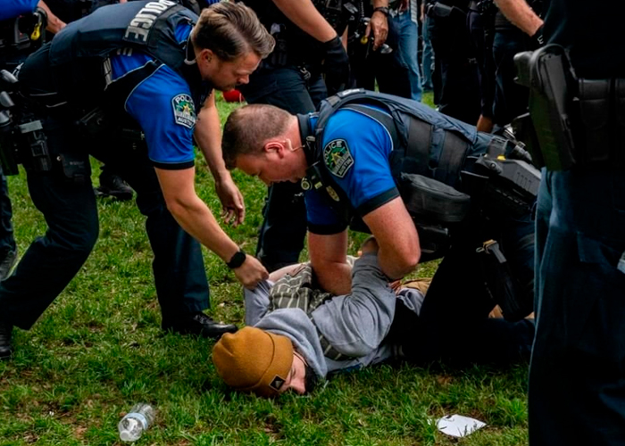 Policías estadounidenses, arrestaron el miércoles a decenas de universitarios que protestaban en las universidades del Sur de California y de Texas; en contra del genocidio que Israel comete contra el pueblo palestino.
