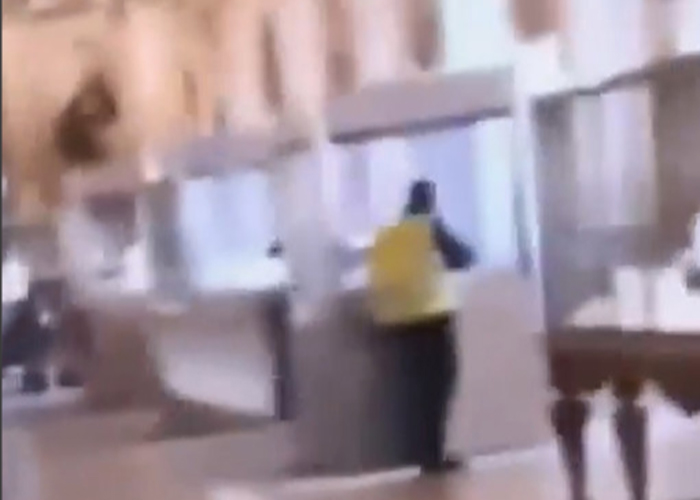 Ce type avec le gilet jaune est en train de dérober des joyaux de la Couronne française, au Musée du Louvre, un dimanche matin à 9h30 😳