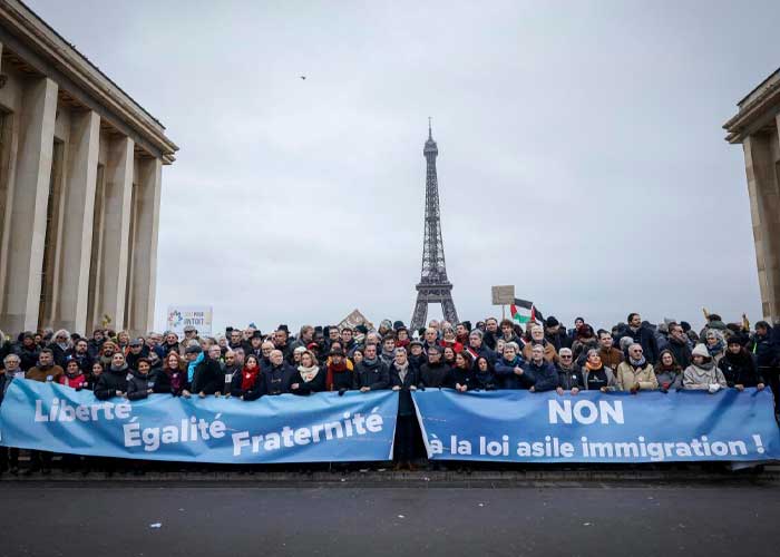 Miles de personas salieron a las calles en toda Francia el domingo, para manifestarse en contra de la discutida ley de inmigración; a tan sólo cuatro días de que el Consejo Constitucional anuncie su decisión sobre la validez de esta nueva norma.