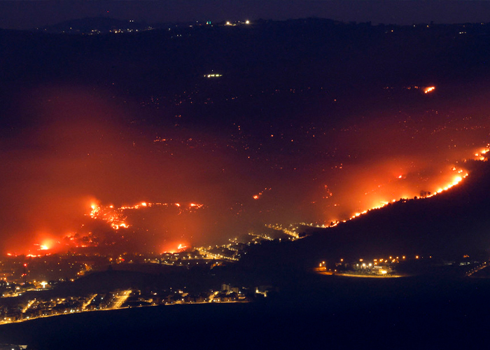 Fuertes incendios arrasan varias localidades en el norte de Israel, luego de los ataques con cohetes y drones efectuados desde el territorio del Líbano este lunes.