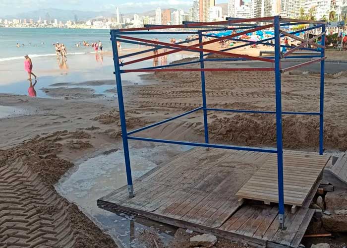 Fuertes lluvias ocasionadas por las intensas tormentas registradas en distintos puntos de la Comunidad Valenciana, España han dejado un «caos» en la playa de Levante en Benidorm, totalmente devastada por la tromba de agua.