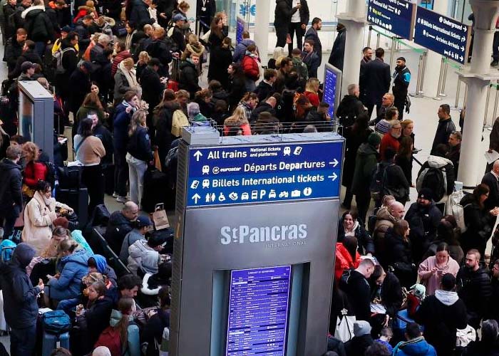 La situación ha generado caos en la estación londinense de St. Pancras, donde miles de pasajeros enfrentan la cancelación de sus planes de desplazamiento para celebrar la Nochevieja en otros países.