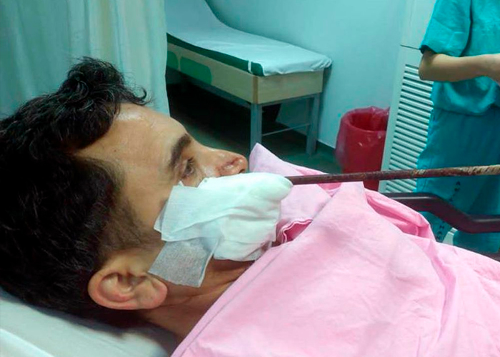 Luego de recibir una atención básica, lo llevaron a una unidad especializada en el Hospital de Investigación y Capacitación de Samsun, en Turquía, donde le removieron la barra. Así mismo informaron que , en seguida, lo trasladaron a cuidados intensivos, informaron medios locales.