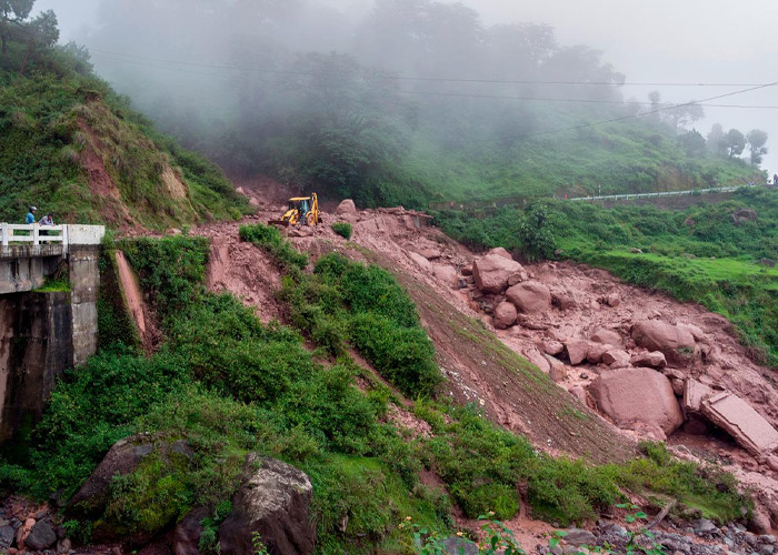 Un gran deslizamiento de tierra ocurrió en la tarde de este martes sobre una carretera cerca de la ciudad de Joshimath-India.