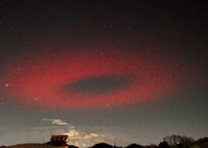 “Medí el tamaño del elfo fotografiado anoche, tiene unos 360 kilómetros de diámetro y se desarrolló a unos 100 kilómetros de altura en la ionosfera. La duración del evento se estima en un milisegundo”; señaló Binotto.
