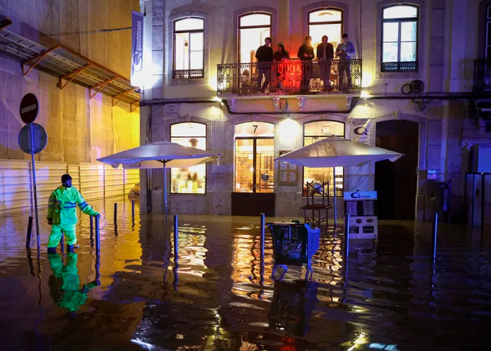 De la misma manera decretaron la máxima alerta en la capital portuguesa, e instaron a la población a permanecer en sus casas; ya que las fuertes lluvias causaron inundaciones en varios edificios y las corrientes arrastraron automóviles.