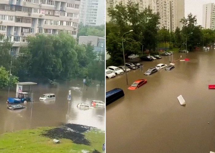 La ola de calor de más de 35 grados centígrados que sofocaba a los moscovitas la semana pasada ha dado lugar a lluvias torrenciales en la capital de Rusia este martes.
