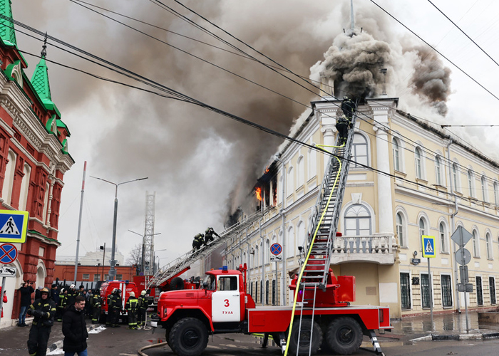 Parte del tejado de un hospital militar se ha derrumbado la tarde de este lunes en la ciudad de Tula, Rusia, a causa de un fuerte incendio.