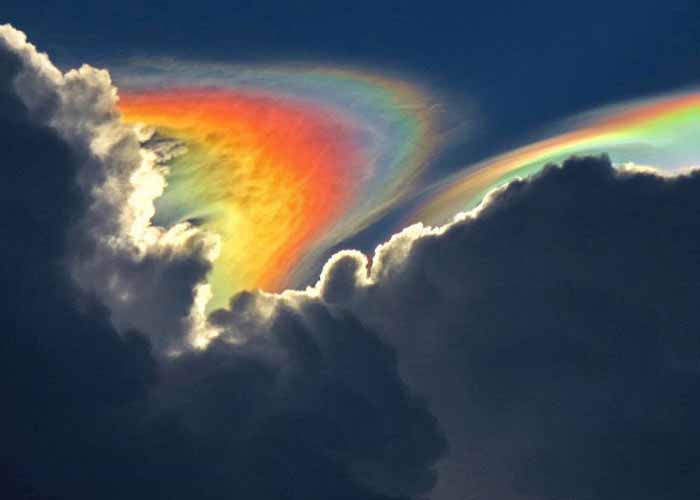 Este tipo de 'arcoíris' es un curioso fenómeno que sucede cuando la luz del sol se refleja a través de las nubes. Así, los cristales de hielo forman un prisma de colores brillantes que forma la siguiente imagen: