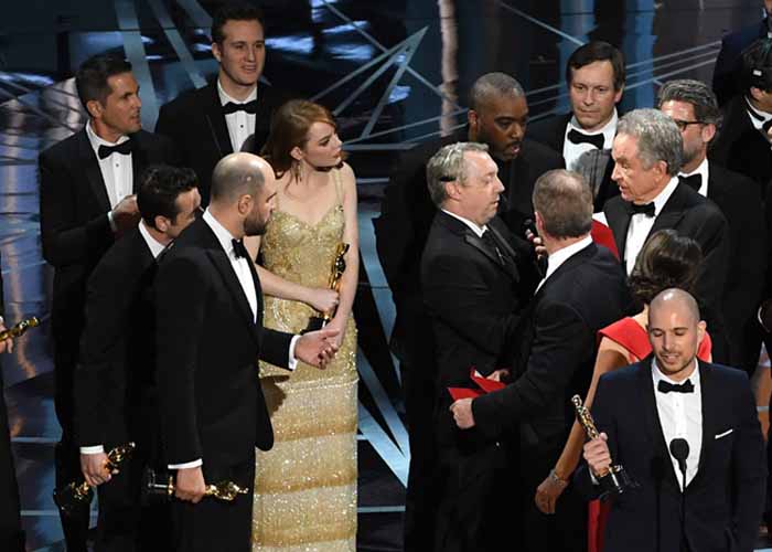 Todo apuntaba a que La La Land, tras obtener los galardones al mejor director (Damien Chazelle), mejor actriz (Emma Stone), mejor banda sonora original, mejor canción original (City of Stars), mejor diseño de producción y mejor fotografía, se coronaría como mejor película y, de hecho, así lo anunciaron Warren Beatty y Faye Dunaway.