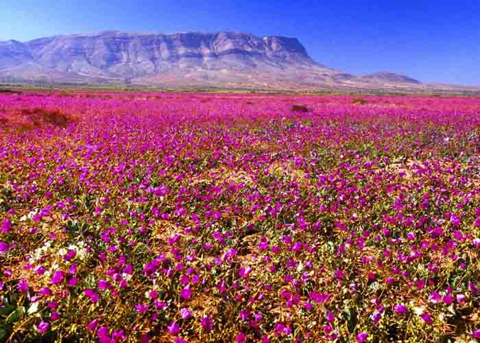Este fenómeno, que ocurre con una distancia de cinco o siete años, pero que se ha vuelto recurrente debido a la presencia de el fenómeno climatológico El Niño, atrae a miles de turistas con sus más de 200 especies florales y fauna endémica.