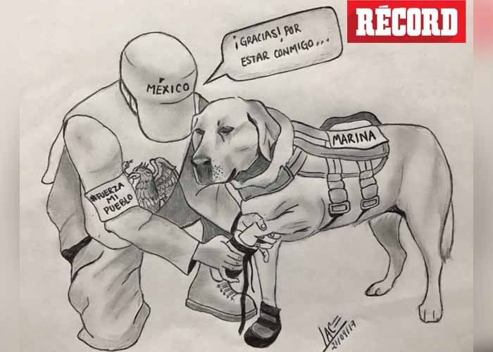La perrita Frida, fiel rescatista y de gran ayuda para el terremoto de México hoy plasmada con cariño en varios dibujos. pic.twitter.com/LSvS020Mqd