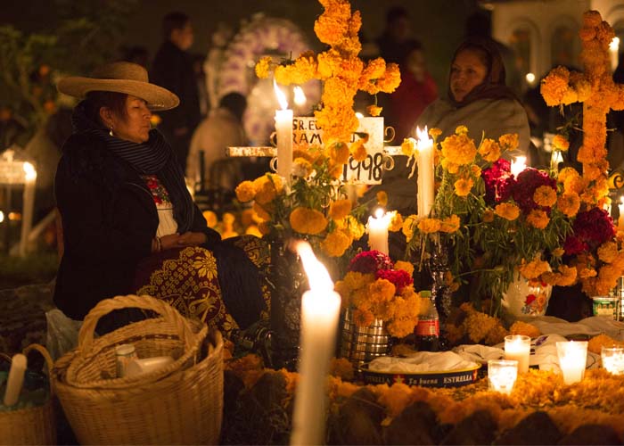 En el panteón de Tzurumútaro, un pueblo del municipio de Pátzcuaro del estado de Michoacán, centenares de personas pasan la noche a la intemperie, cobijados por sus familiares muertos, a quienes velan, e incluso hablan, durante toda la noche.