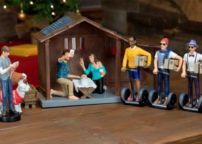 Una famosa empresa estadounidense ideó crear la tradicional imagen católica del pesebre del Niño Dios con el toque estético "hipster" y moderno, donde se incluye selfies, patinetas y hasta la empresa Amazón.