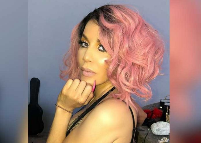 La caballota aparece con su largo cabello teñido de azul y con una chaqueta que deja al descubierto la mitad de sus senos y en la cual escribió “La belleza de ser La bestia“.