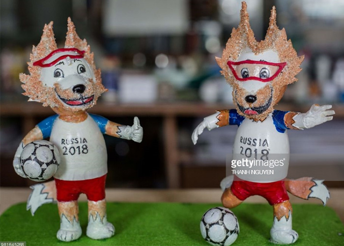 Bufandas de fútbol, camisetas y… ¿cascarones vacíos? Los souvenirs del Mundial de Rusia-2018 adquieren un aspecto original en Vietnam, donde un profesor jubilado fabrica mascotas con cáscaras de huevo meticulosamente trabajadas a mano.
