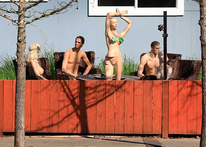 En Estados Unidos en la ciudad de Santa Rosa, California, un hombre se vio obligado a reducir la altura de la cerca de su casa debido a las quejas de un vecino, pero decidió vengarse organizando una fiesta de maniquíes 'desnudos' al aire libre.