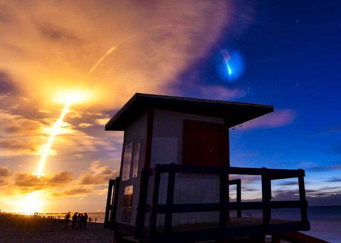 El despegue se produjo poco más de una hora antes del amanecer en Florida. La luz del Sol comenzaba a mostrarse en el cielo y sus rayos iluminaron de manera espectacular los gases de escape producidos por el cohete mientras se elevaba en la atmósfera. Los fanáticos de la ciencia espacial se deleitaron con el lanzamiento