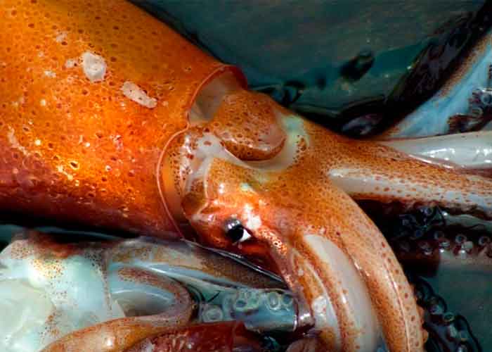 Las imágenes fueron obtenidas por un sumergible operado por control remoto (ROV, por sus siglas en inglés). La visión del calamar sorprendió a los expertos, que en un primer momento no entendían lo que estaban viendo. "¿Qué demonios?", se oye exclamar a uno de los especialistas en el video.