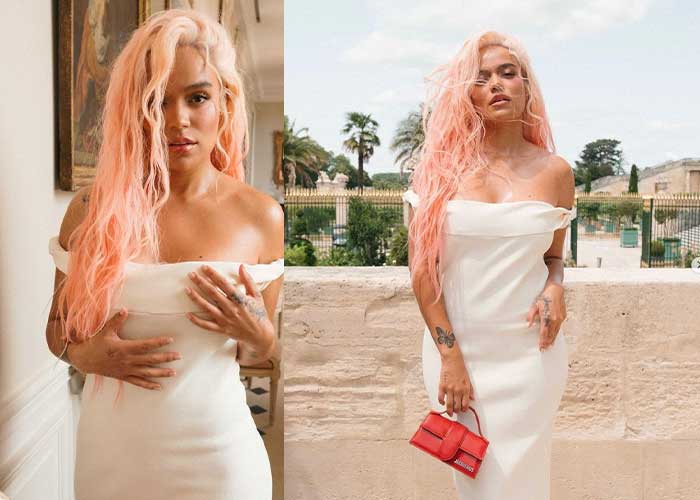 Con un vestido blanco de la famosa casa de modas fue que la intérprete de ‘Provenza’ cautivó en su perfil de Instagram; donde con diversas poses mostró su elegante atuendo, que resulta mucho más su cabello rosa.